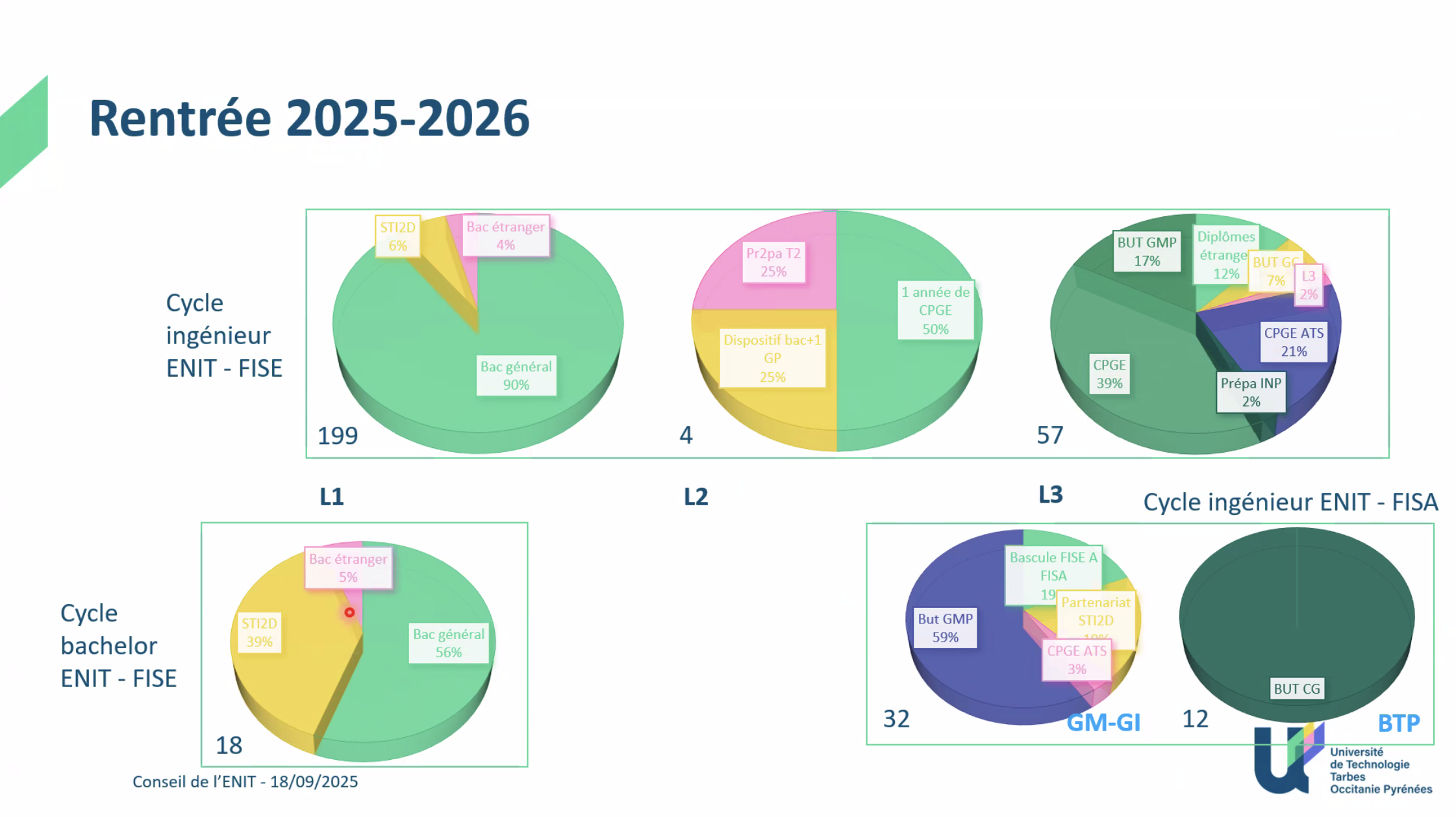 Voici les chiffres définitifs de la rentrée 2025 présentés lors du dernier Conseil de l'Ecole) (nom officiel du CA de l'ENIT).